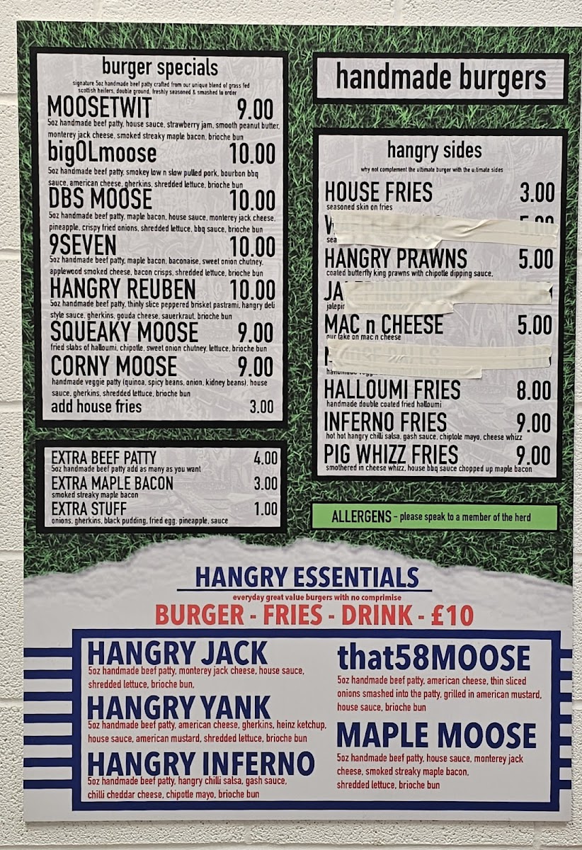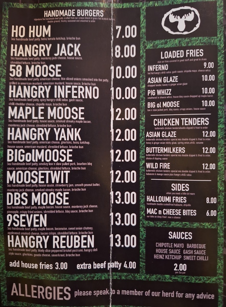 Hangry Moose Menu